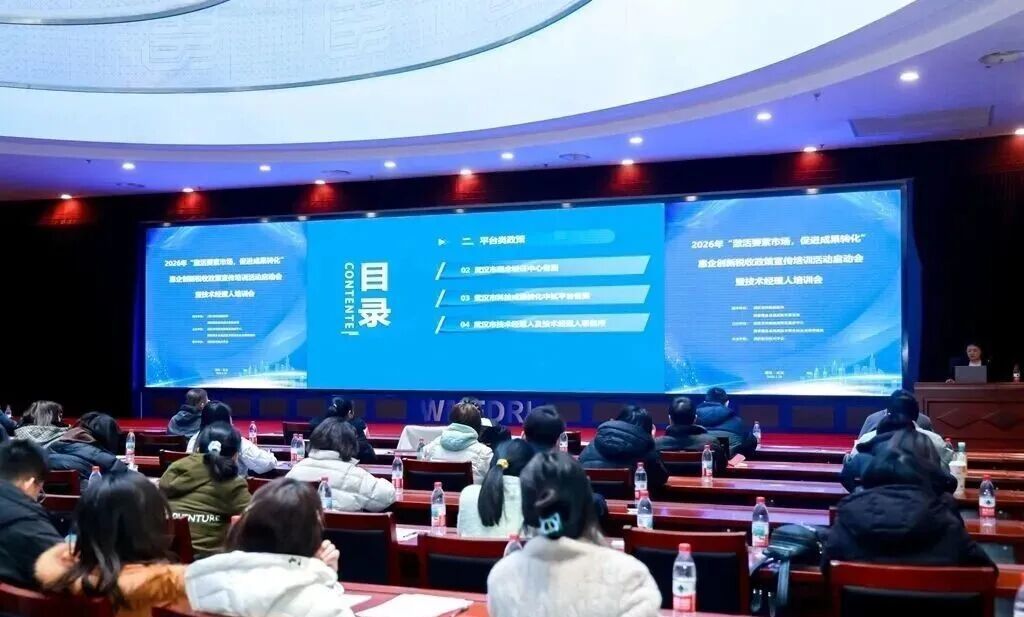 1月28日,以“激活要素市场,促进成果转化”为主题的2026年武汉市惠企创新税收政策宣传培训活动启动会暨技术经理人培训会举行。此次活动旨在推动技术合同认定登记、研发费用加计扣除等惠企政策全面落地,进一步激发企业科技创新活力,提升技术经理人队伍专业水平。