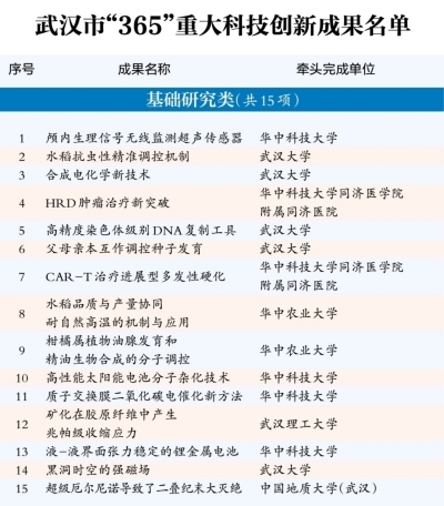 一日一创新,一岁一登高。从高校院所的原始突破到三大走廊的产业转化,从实验室里的关键攻关到市场上的硬核产品,武汉以日日为新、久久为功的执着,围绕“965”现代化产业体系,推动科技创新与产业创新深度融合。按照基础研究有重大突破、关键技术打破国外垄断、创新产品实现首发首创等标准,经权威机构评选,三类65项重大标志性成果脱颖而出。