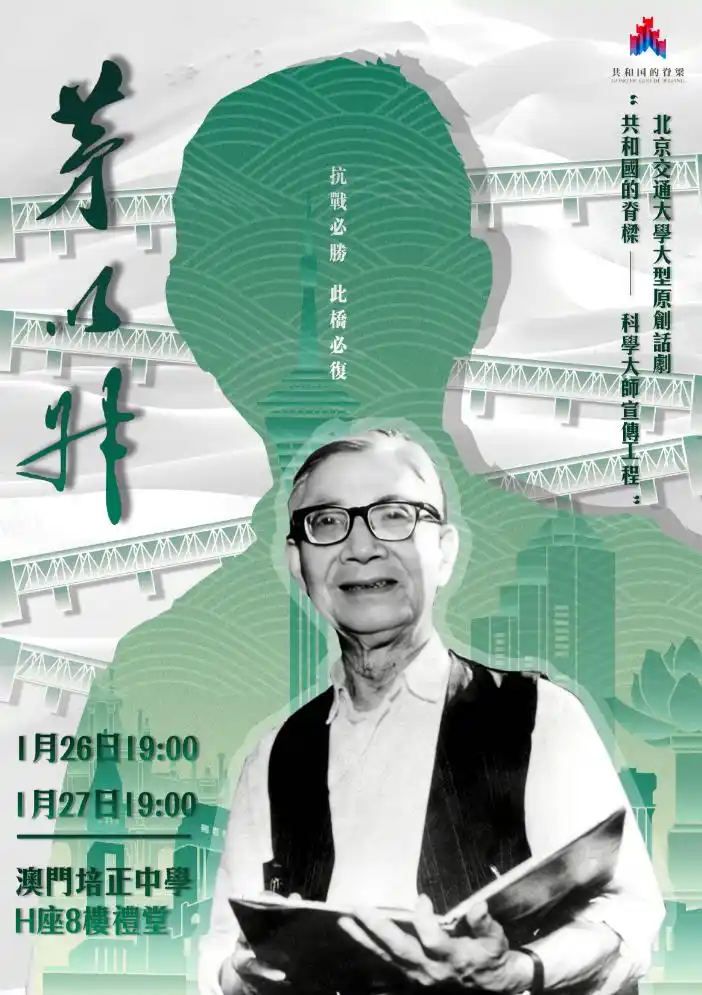 新华社澳门1月26日电(记者齐菲、宋晨)原创话剧《茅以升》26日起一连两日在澳门培正中学上演,弘扬以爱国主义为底色的科学家精神,传承科技报国的崇高情怀。 -