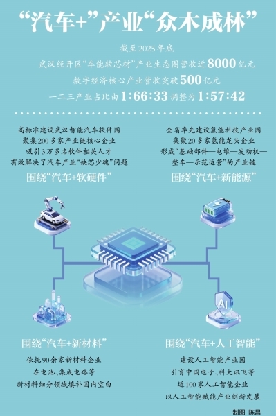 业内人士称,从检测设备到新型存储,从车规级芯片到半导体材料,武汉经开区的产业版图正在从“单点突破”走向“系统集成”,一个围绕“车能软芯材”的产业生态圈正在加速成型。