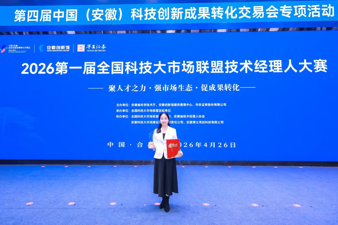 4月26日,2026第一届全国科技大市场联盟技术经理人大赛于安徽收官。我市选派的第二届武汉技术经理人大赛金奖选手郭彩霞奋勇争先,在全国技术市场联盟总决赛中斩获季军。