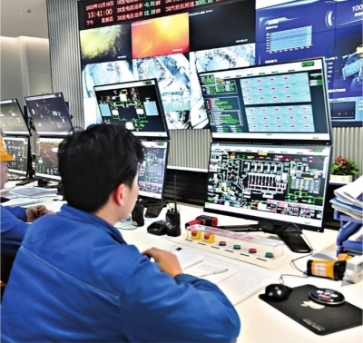 固体废物入炉后,全流程便由AI系统接管。它如同智慧大脑,先精细铺排,分析其类型与干湿程度,精准计算最优燃烧温度与风量。“以前燃烧参数调控全凭师傅经验,培养成熟技工需5—8年,现在AI学习20天,能力就相当于5年的老师傅。”设备部经理张迎辞介绍,AI系统上线,彻底告别“凭经验、盯屏幕”的粗放模式。正在控制室值班的工作人员张强对此深有体会:“以前我们值班盯着屏幕眼睛都不敢眨一下。有时恨不得变身‘八爪鱼’来控制一排按钮。现在我们工作轻松多了,值班室的人也减少了。”